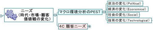 言われてみればあたりまえのことも、目前の課題のとらわれて案外見落としがちになります。 MBAマップなら、このようなPESTパーツも組み込めるので、注意喚起機能としていつも気にかけることができます。